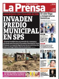 Una bandera de Honduras y un trapo blanco permanecen colgados en los portones de metal negros. Ambos cubren un letrero pintado de blanco donde se lee: colonia Roberto Contreras. Todo fuera normal si se tratara de un portón cualquiera, pero es la entrada principal del inmenso predio donde por años funcionó la Procesadora Municipal de Carnes (Promuca), que fue cerrada por insalubridad en 2017.